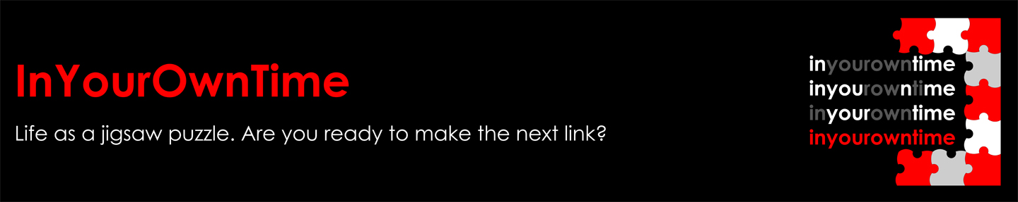 InYourOwnTime is a self-help tool that challenges you to consider LIFE as a jigsaw puzzle made up of MANY, differently shaped, all equally IMPORTANT PIECES that fit into a perfect picture when LINKED TOGETHER.